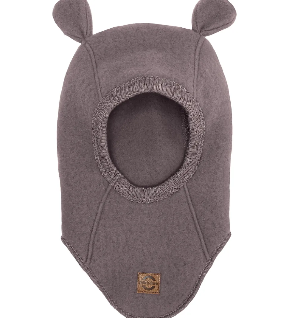 Skøn Mikk-Line elefanthue i mørk, støvet lilla, filtet merinould og med søde ører på toppen.