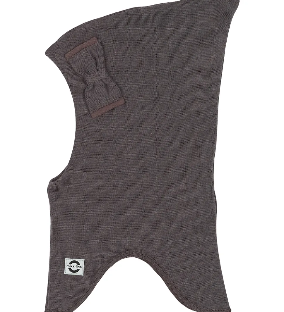Sød Mikk-Line elefanthue i mørkelilla med en sløjfe på den ene side.