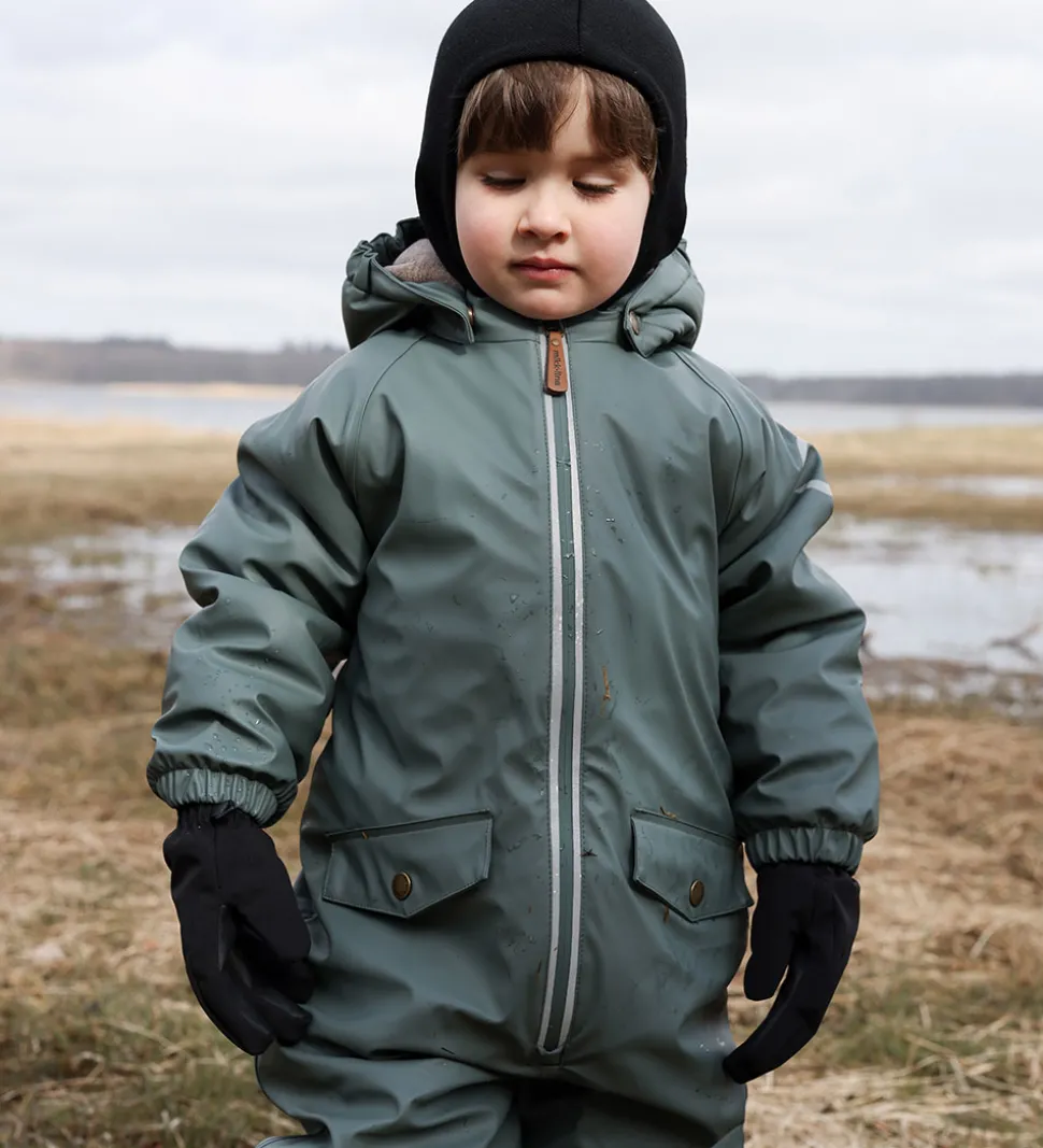 Smart Mikk-Line flyverdragt i grønt PU, og hætten har en flot kant af imiteret pels.