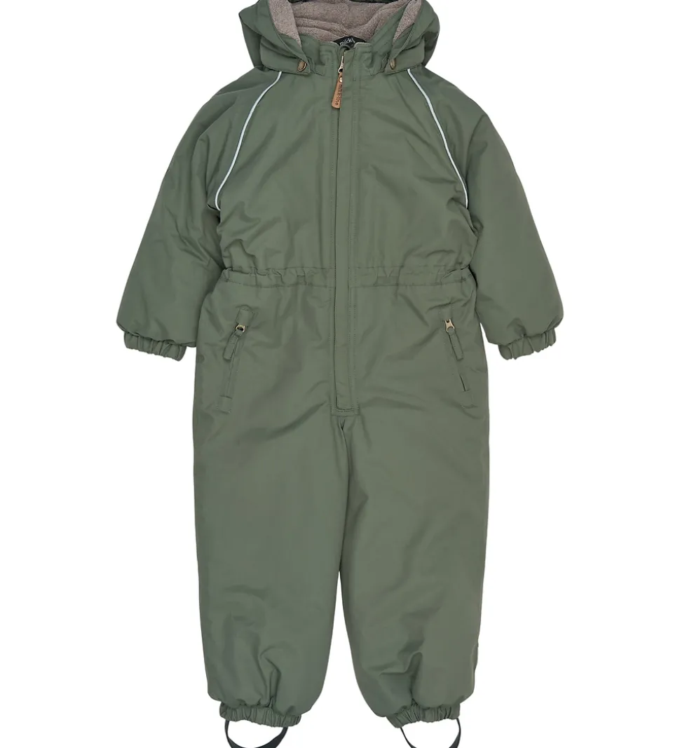Fin Mikk-Line flyverdragt i støvet grøn med refleksdetaljer.