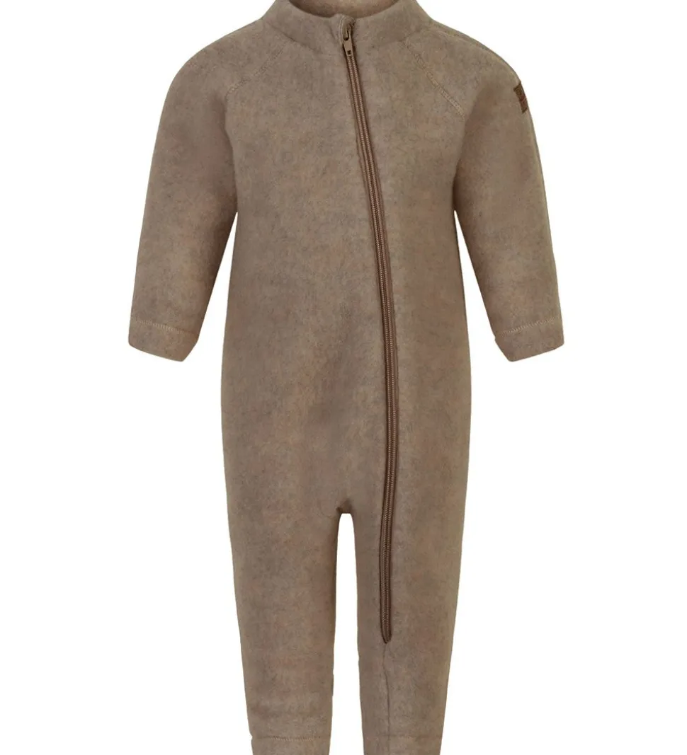 Pragtfuld Mikk-Line køredragt af filtet uld i meleret lysebrun.