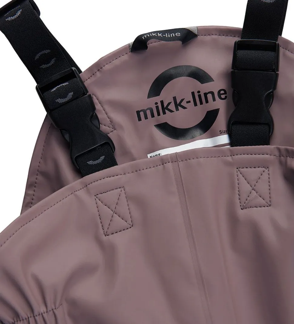 Skønt Mikk-Line regntøj bestående af en regnjakke og et par regnbukser i ensfarvet, støvet lilla PU.