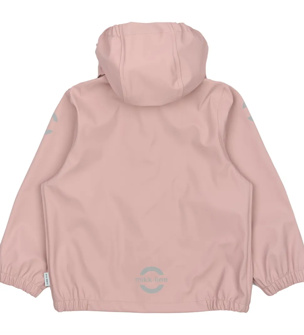 Flot Mikk-Line regntøj bestående af en regnjakke og et par regnbukser i ensfarvet, rosa PU.