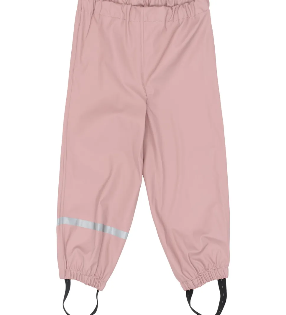 Regnbukserne har en indvendigt justerbar elastikkant i livet og elastikkanter om anklerne samt justerbare elastikstropper, som kan sættes under gummistøvlerne.