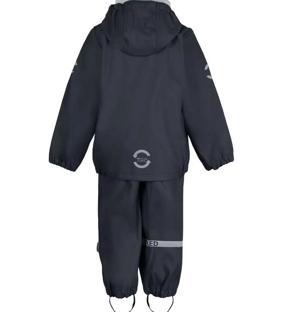 Flot Mikk-Line regntøj bestående af en regnjakke og et par regnbukser i ensfarvet, navy PU.