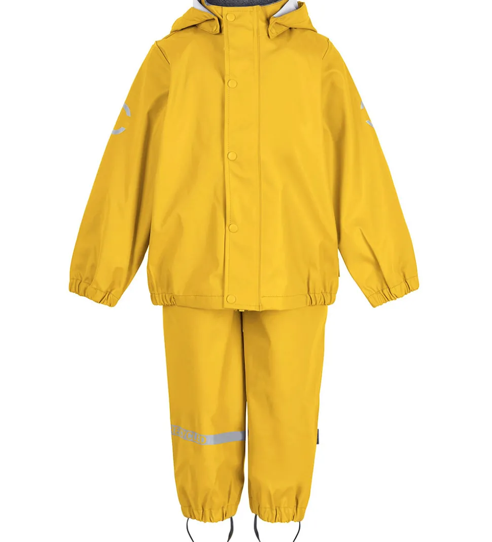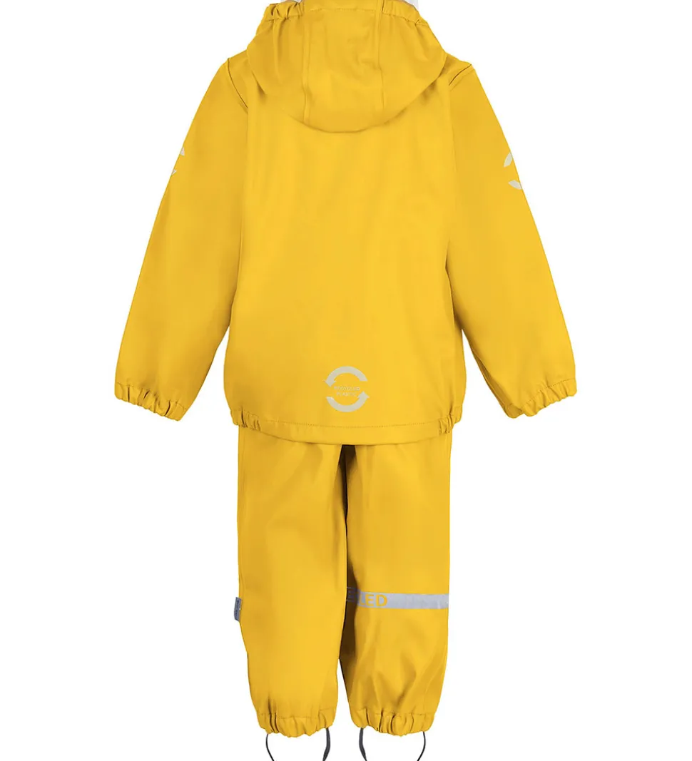 Skønt Mikk-Line regntøj bestående af en regnjakke og et par regnbukser i ensfarvet, gul PU.