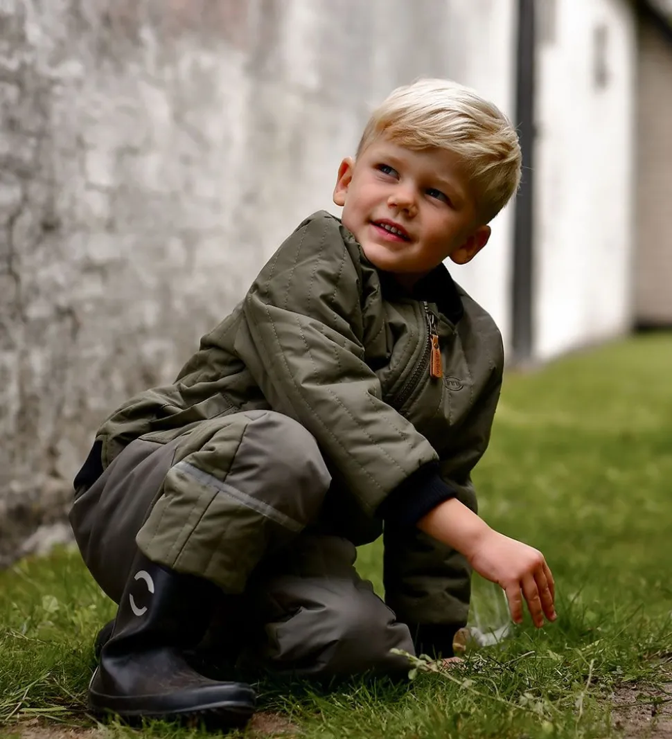 Fede Mikk-Line termobukser i støvet olivengrøn med lodrette syninger og med sorte ribkanter.