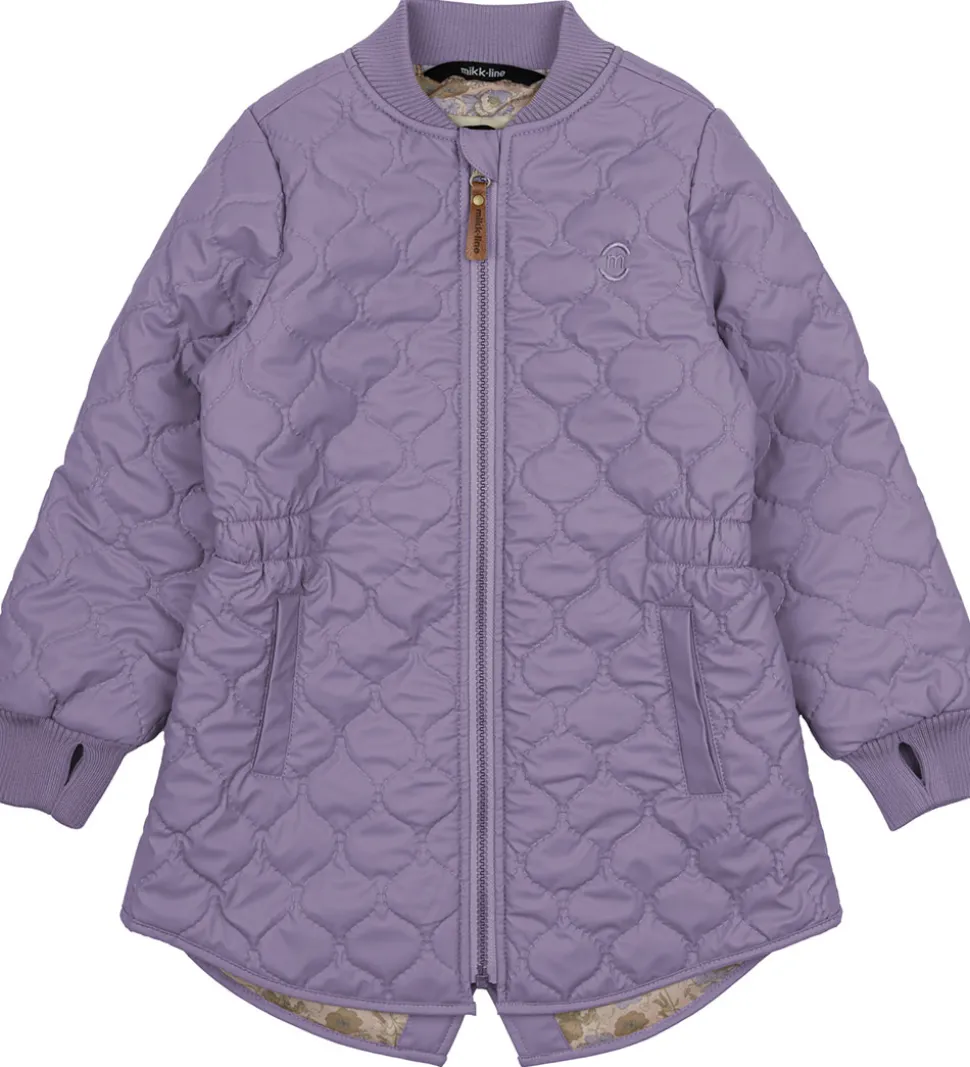 Sød Mikk-Line termojakke i lilla med en bølgende, quiltet struktur.