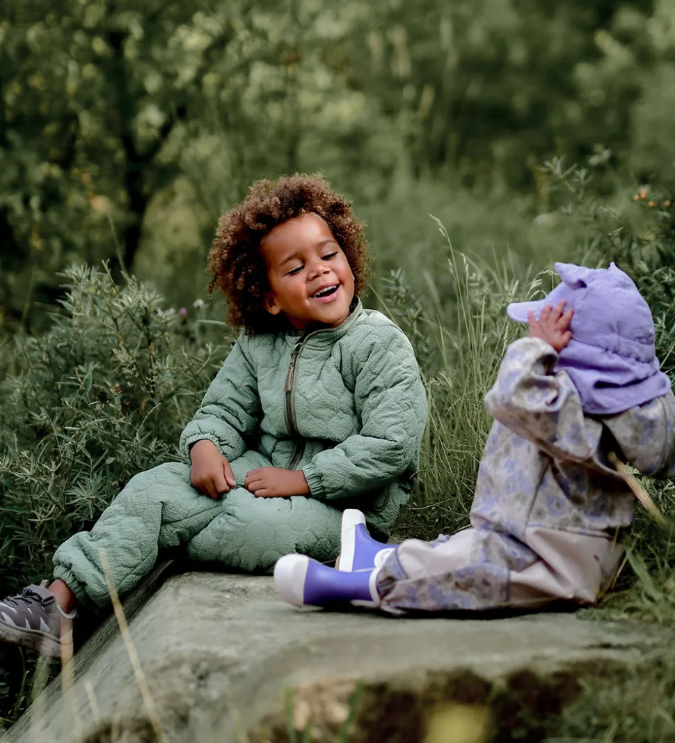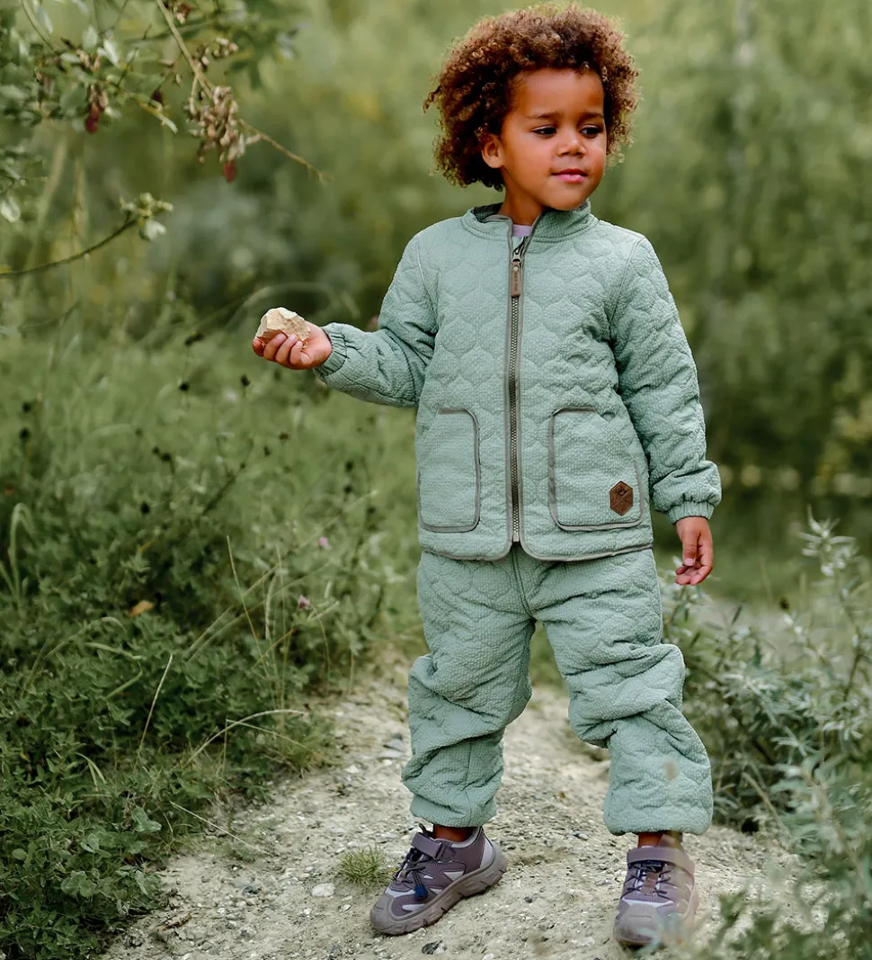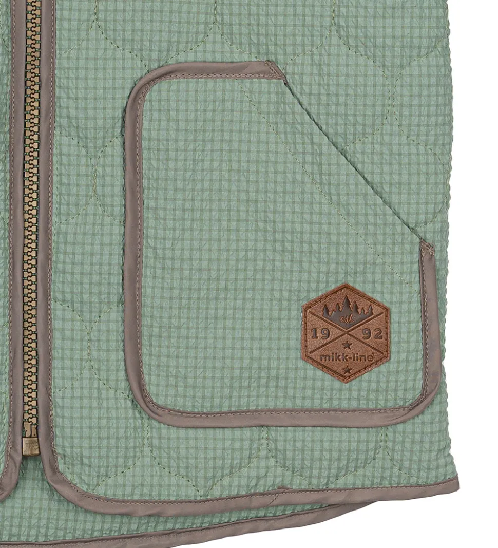 Sej Mikk-Line termojakke med tern i grønne nuancer og brune kontrastkanter. Termojakken har en bølgende, quiltet struktur.