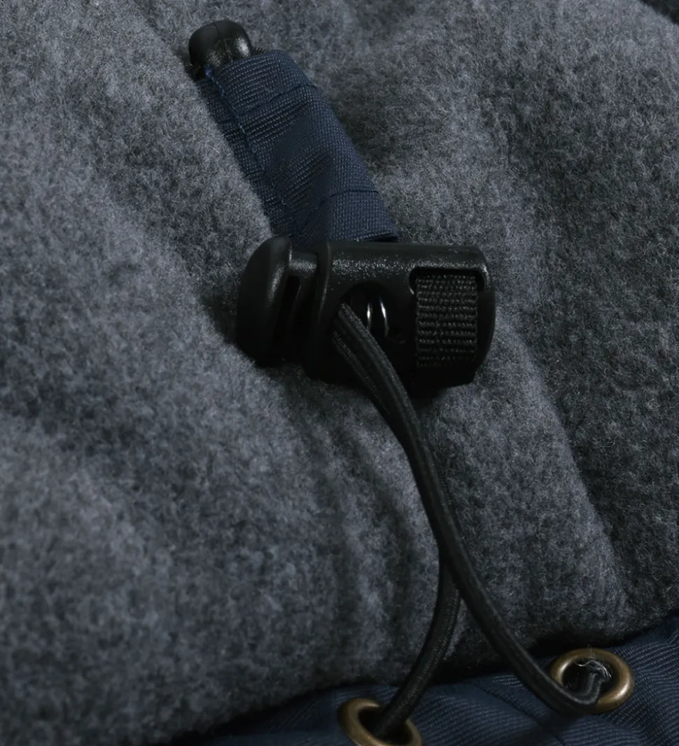 Mikk-Line vinterjakken har en krave i ribkvalitet og en aftagelig hætte, som sidder fast med trykknapper på ydersiden af kraven. Hætten har en bred ribkant i ansigtsåbingen. I ærmeåbningerne er der snefang med brede ribkanter og i bunden af vinterjakken er der en elastik, som kan justeres indvendigt i højre side.