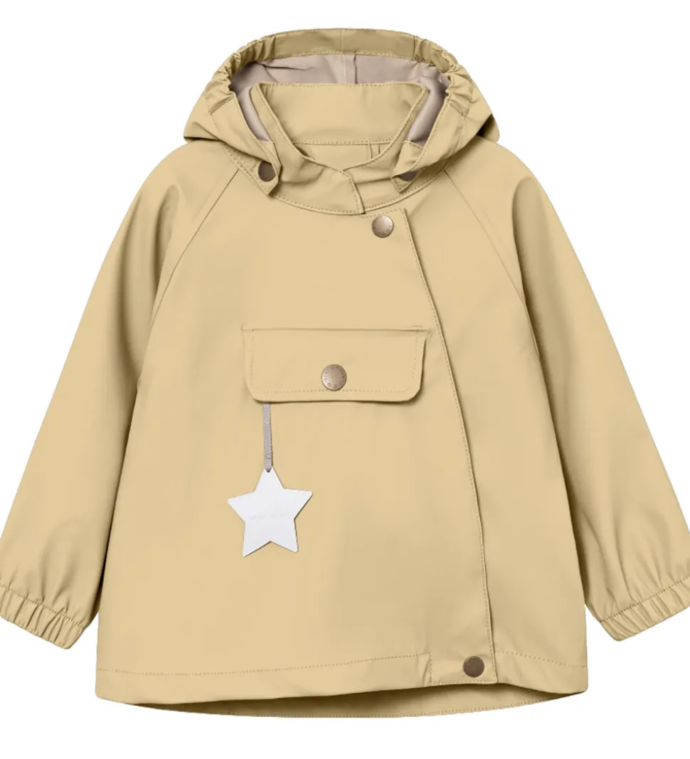 Fint Mini A Ture regntøj af PU i en støvet beige nuance med et gult skær.