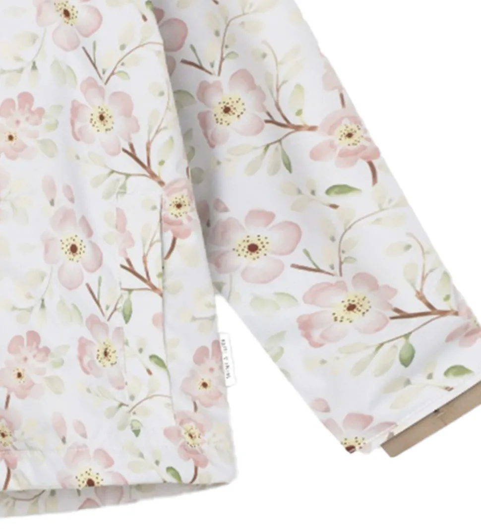 Smart Mini A Ture sommerjakke i hvid med et alloverblomsterprint i rosa, grønne, brune og gule nuancer. Sommerjakken har beige for.