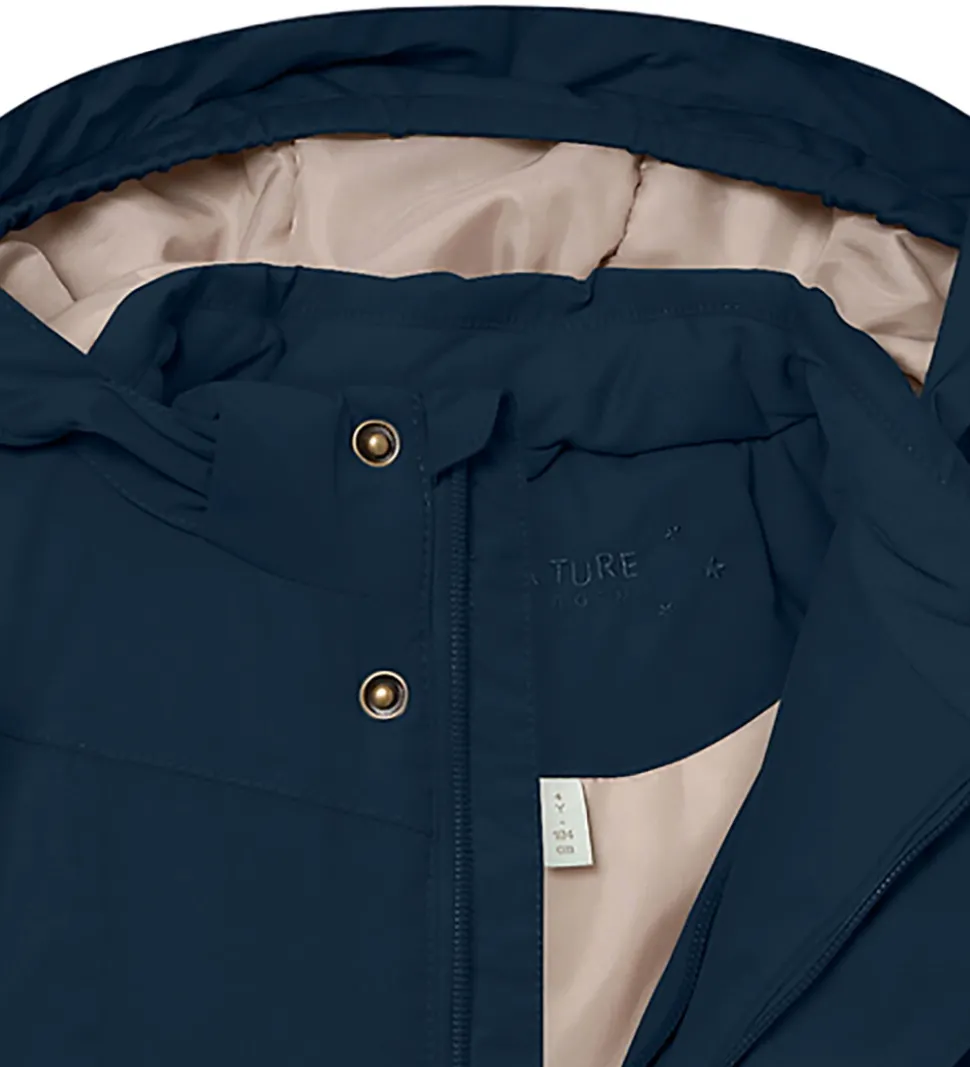 Lækker Mini A Ture vinterjakke i navyblå. Vinterjakken er med beige for.