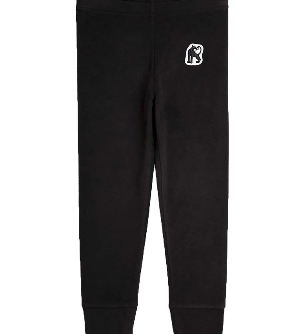Fin Mini Rodini fleecebukser i sort med en hvid applikation med en sort panter på venstre hofte.