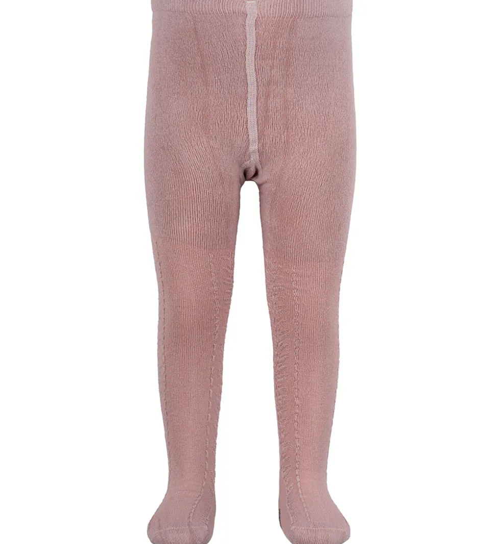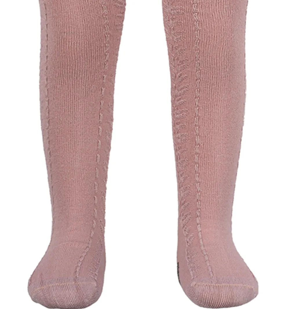 Fine MiniPop strømpebukser i en smuk rosa farve med et enkelt, dekorativ mønster ned langs benene.
