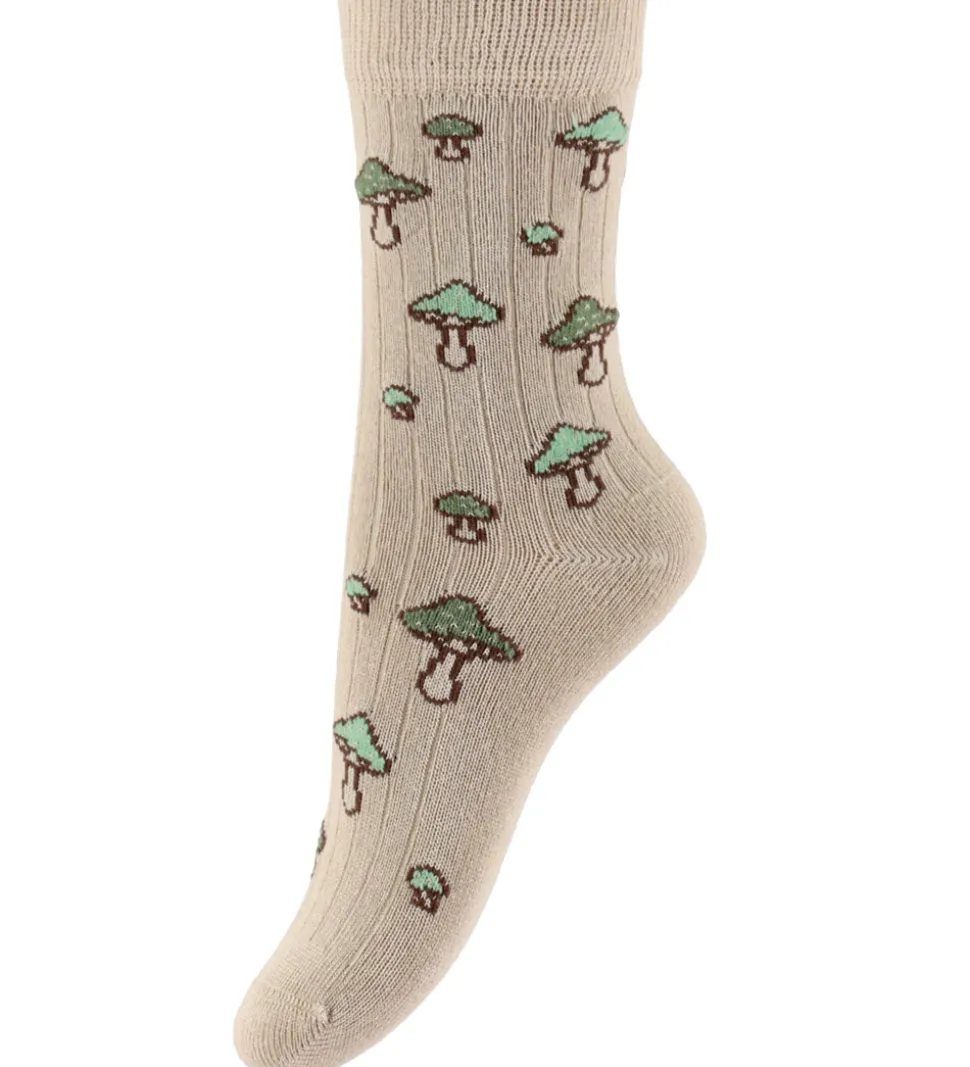 Attraktive strømper fra MiniPop i en 3-pak bestående af forskellige designs. MiniPop strømperne inkluderer et par med grønne og brune striber, et par i camouflageprint i nuancer af grøn og brun, samt et par med svampe- print på en lys baggrund. Hver strømpe har en behagelig ribkant øverst.