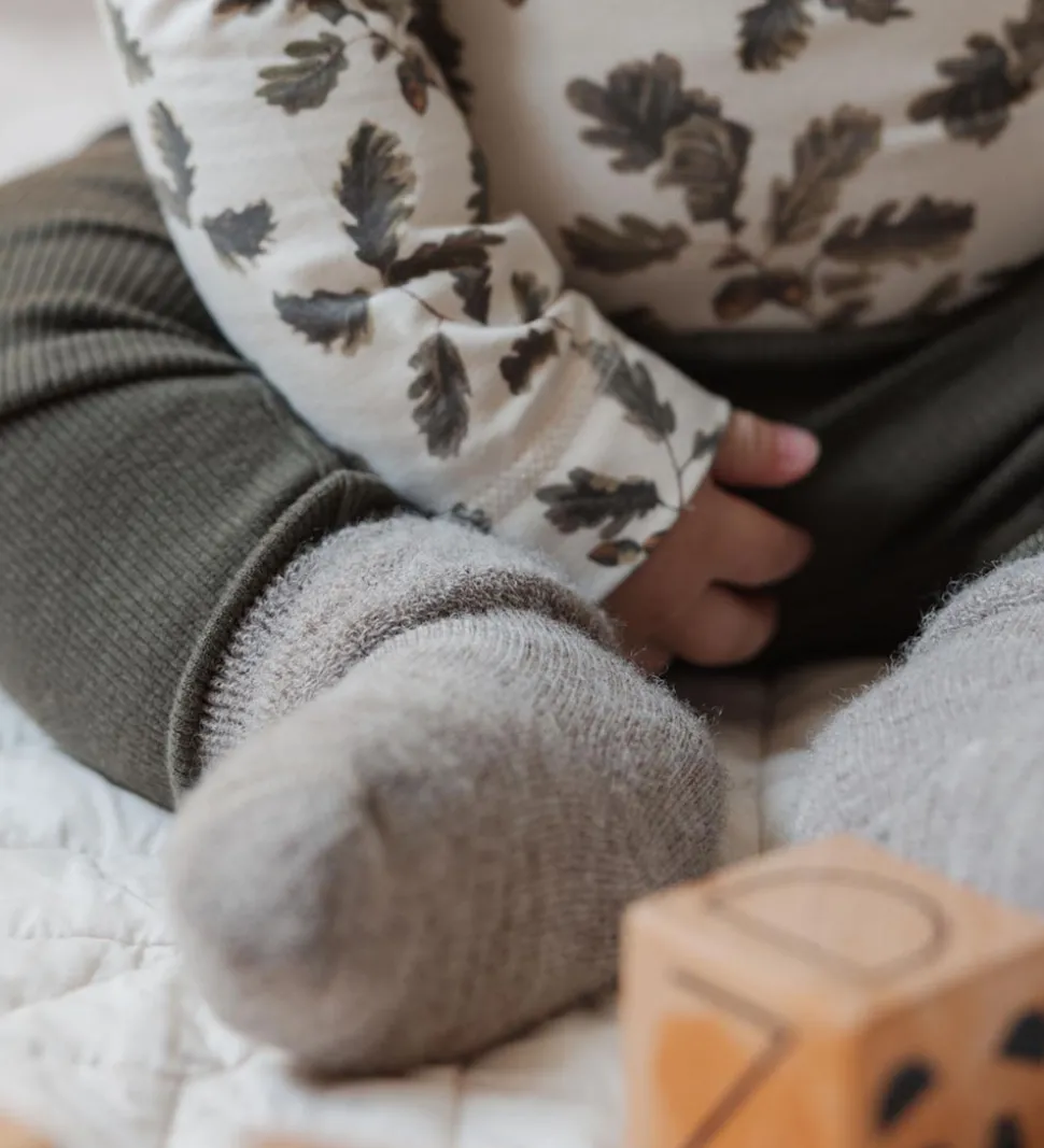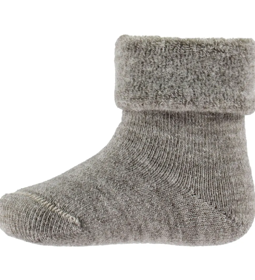 Lækre MiniPop strømper i meleret brun. MiniPop strømperne er er kraftige med en ekstra blød inderside, og de har et langt skaft, som kan bukkes om, hvis man ønsker det.