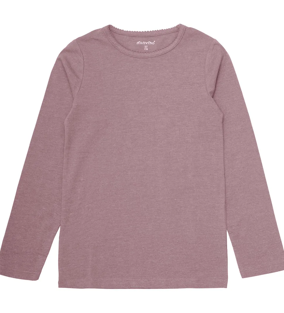 Praktiske Minymo bluse solgt i en 2-pak i beige og i en subtil lilla tone. Begge bluser er designet med lange ærmer og en enkel rund halsudskæring med fine blonder. Minymo sikrer med dette design en tidløs og alsidig stil.