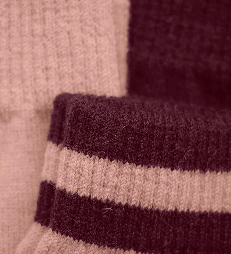 Handskerne har brede, elastiske ribkanter ved håndleddene og er strikket i en blød uldblanding.