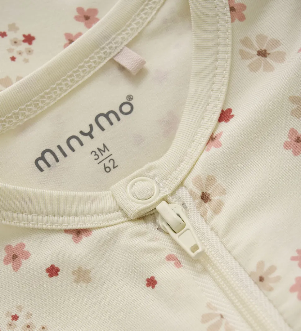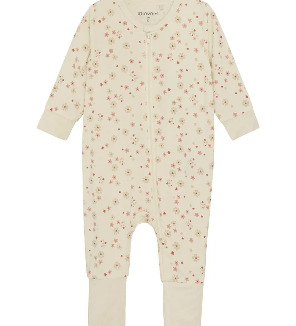Sød Minymo heldragt i beige med alloverblomsterprint.
