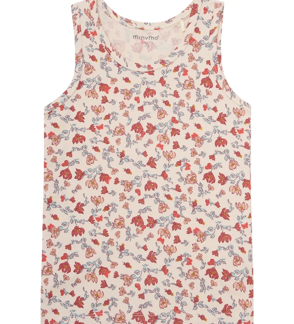 Behageligt Minymo undertøj med en ærmeløs undertrøje i creme med et farverigt blomsterprint og matchende trusser i sart rosa. Detaljerig og stilfuld løsning fra Minymo til en komfortabel hverdagsoplevelse.