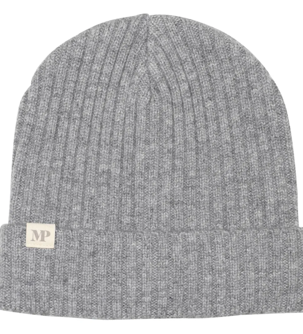 Stilfuld MP hue i meleret grå i en strikket kvalitet med en flot ribstruktur.