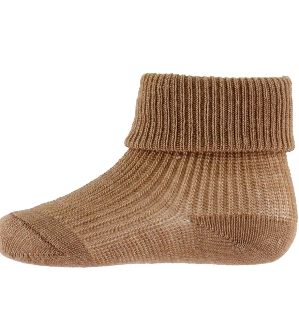 Behagelige MP strømper i en ensfarvet, brun nuance med ribstruktur. MP strømperne er korte med en bred, ombukket ribkant, der sikrer en god pasform.