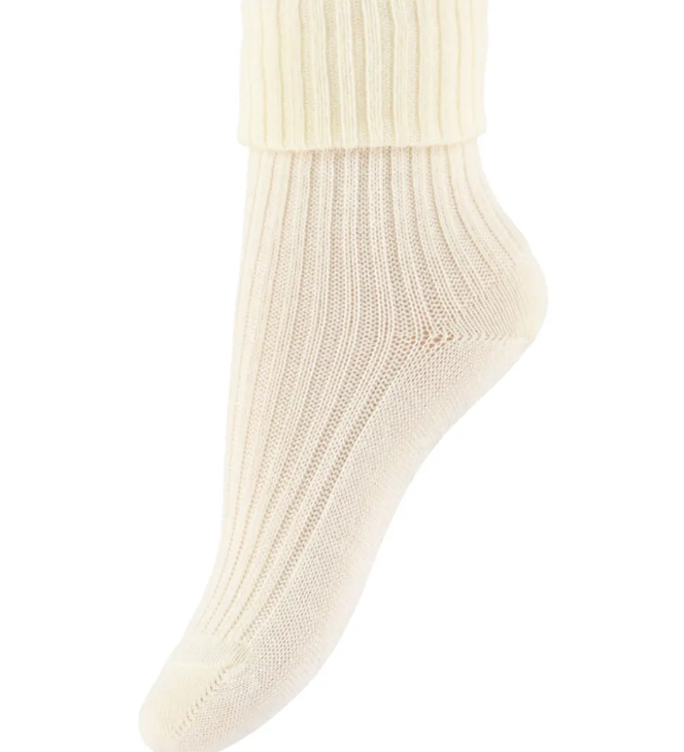 Smarte MP strømper i ensfarvet cremehvid. MP strømperne er udstyret med en bred ribkant øverst, der sikrer en god pasform.