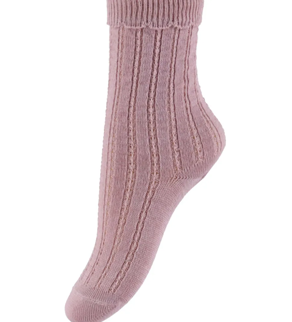 Flotte MP strømper i en sart, rosa farve med et elegant hulmønster. MP strømperne har en blød elastik i toppen, som giver en god pasform. Den fine struktur tilføjer et stilfuldt udtryk til strømperne.