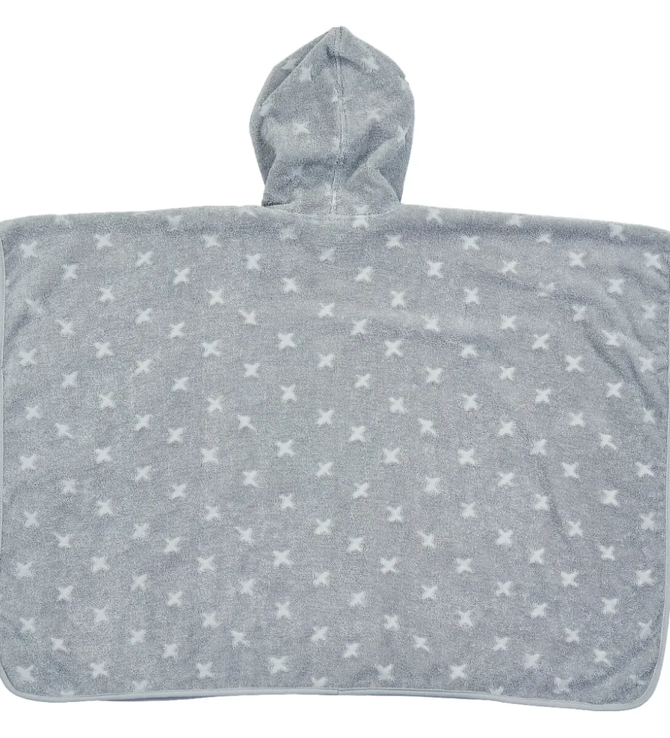 Lækkert Müsli badeponcho i lysegrå med et mønster af indprægede stjerner. Müsli badeponchoen har en fast hætte og er i en lækker frottékvalitet, som holder godt på varmen, hvilket gør den ideel til efter badet eller på stranden.