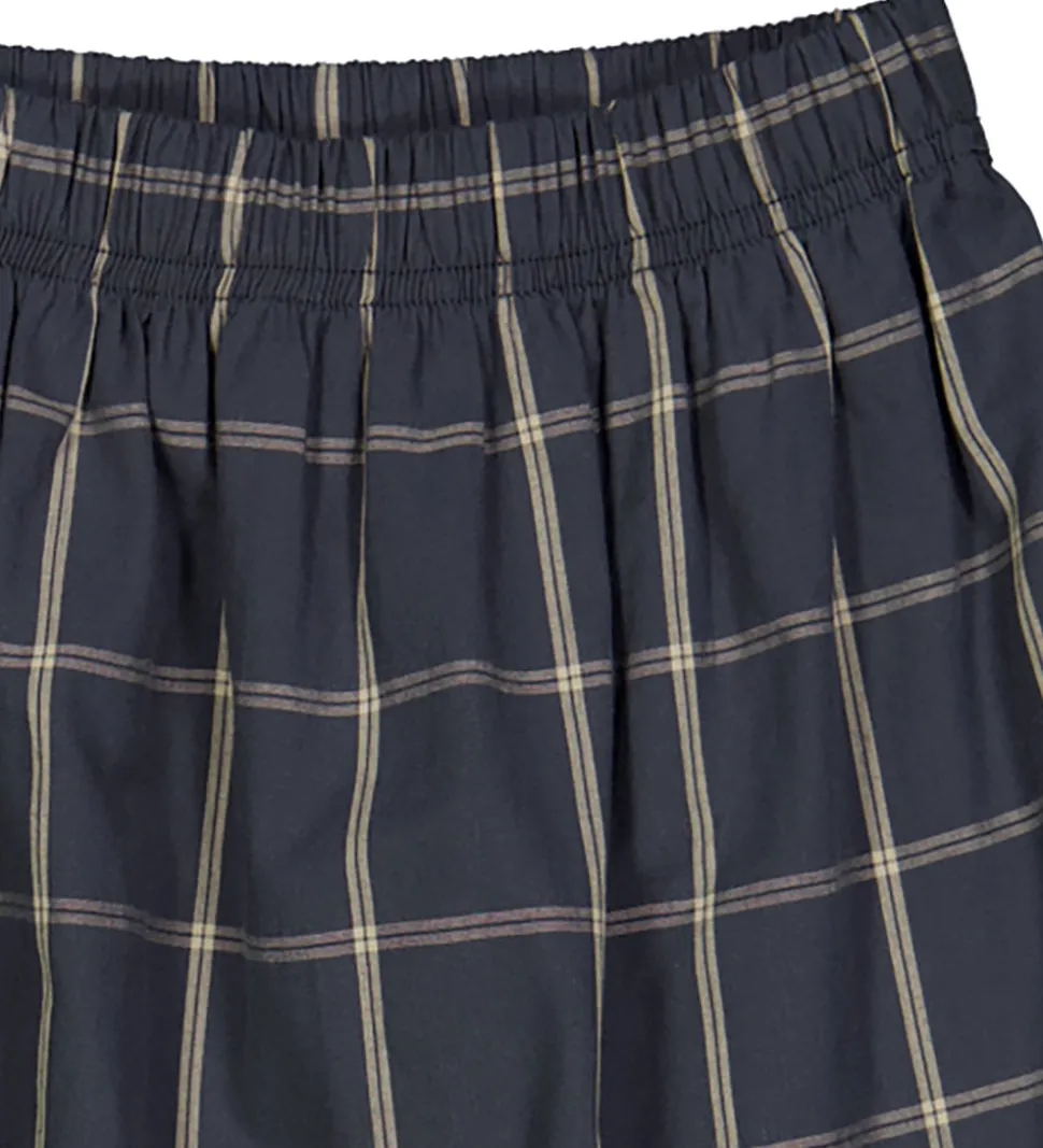 Smart Müsli nederdel i mørkeblå med ternet mønster. Nederdelen har en bred elastik i taljen, som giver en komfortabel pasform. Den er fremstillet i en luftig bomuldskvalitet og kan let styles til forskellige anledninger.