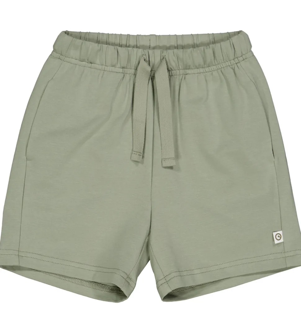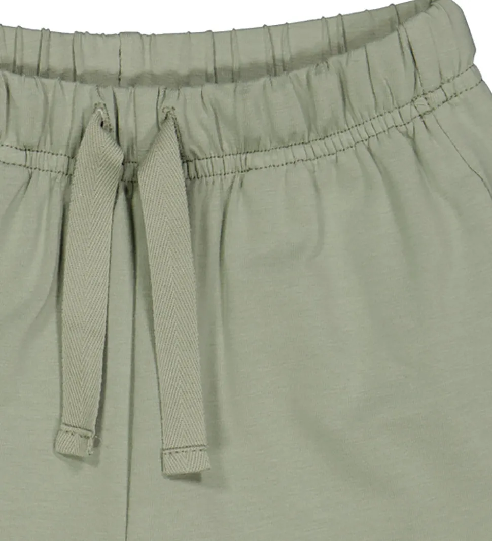 Flotte Müsli shorts i en støvet grøn farve. Müsli shortsene har en elastisk talje med justerbar snøre og diskrete lommer i siden.