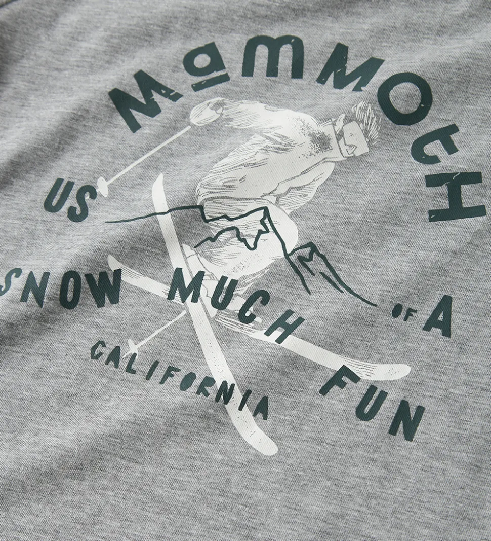 Sej Name It bluse i gråmeleret med et print af en dreng på ski og grønt tekstprint. Blusen har en rund halsudskæring med en smal ribkant og lange ærmer.