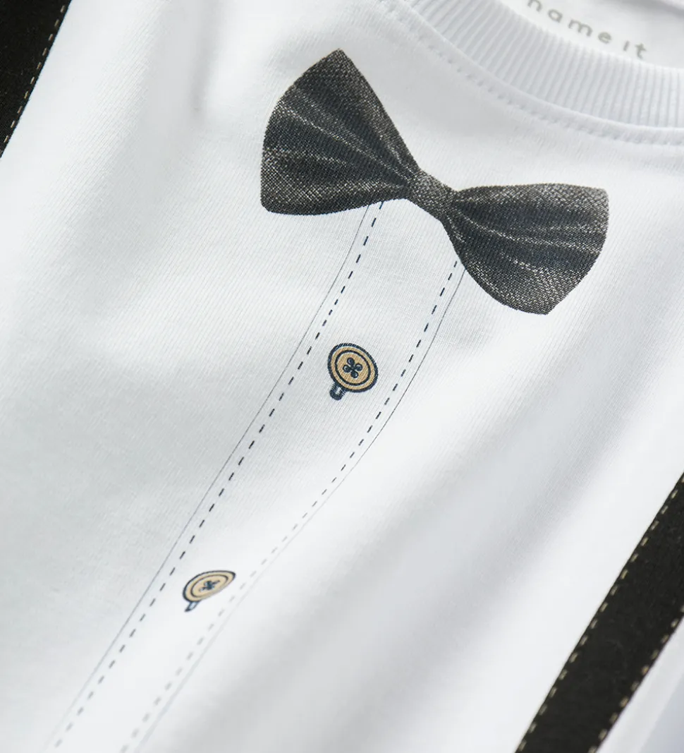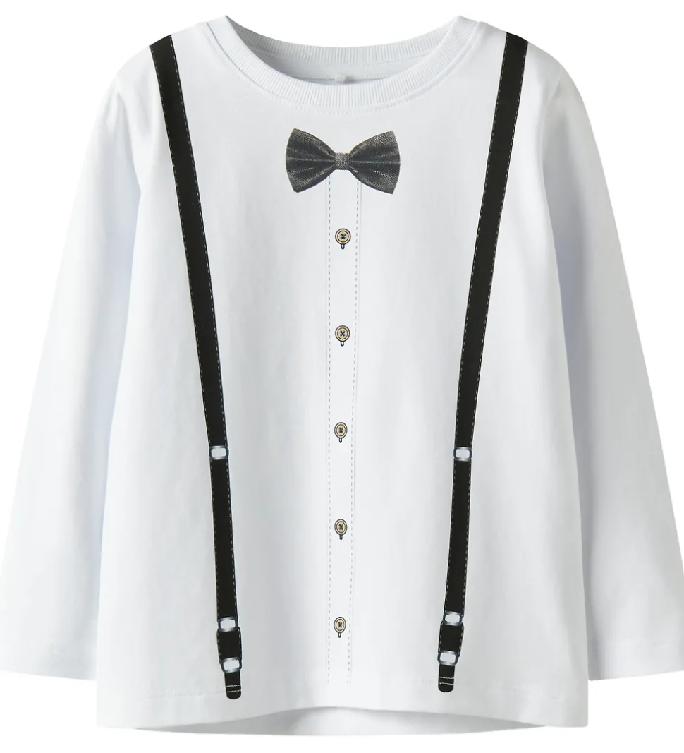 Blusen er hvid med et print af sorte seler og en sort butterfly, der giver et stilfuldt udtryk. Med lange ærmer og rund halsudskæring kombinerer Name It funktionalitet og flot design. En enkel stil, der skiller sig ud på en elegant måde.