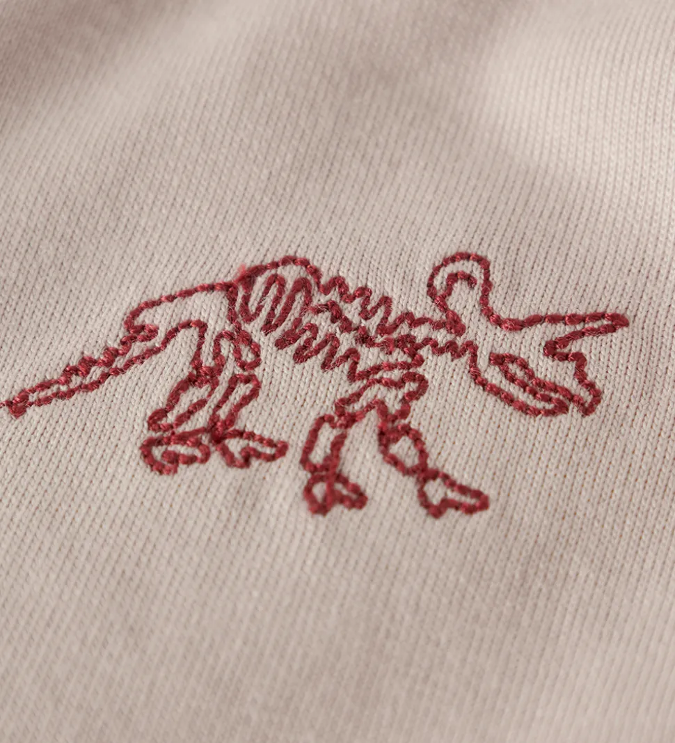 Smart Name It bluse i beige med rosa skær og en lille, broderet dinosaur på venstre bryst. Blusen har en rund halsudskæring med en smal ribkant og lange ærmer.
