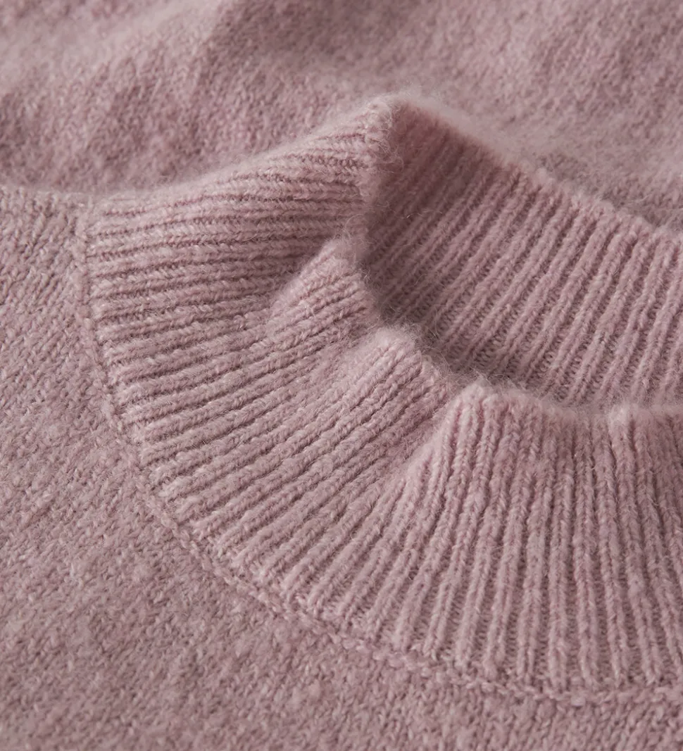 Elegant Name It bluse i rosa strik. Blusen har en afslappet pasform med en høj hals og lange ærmer.