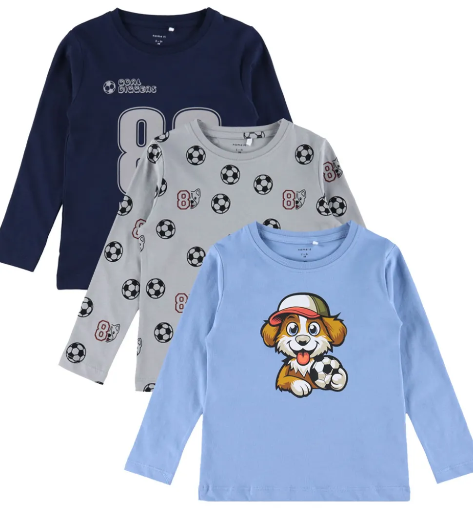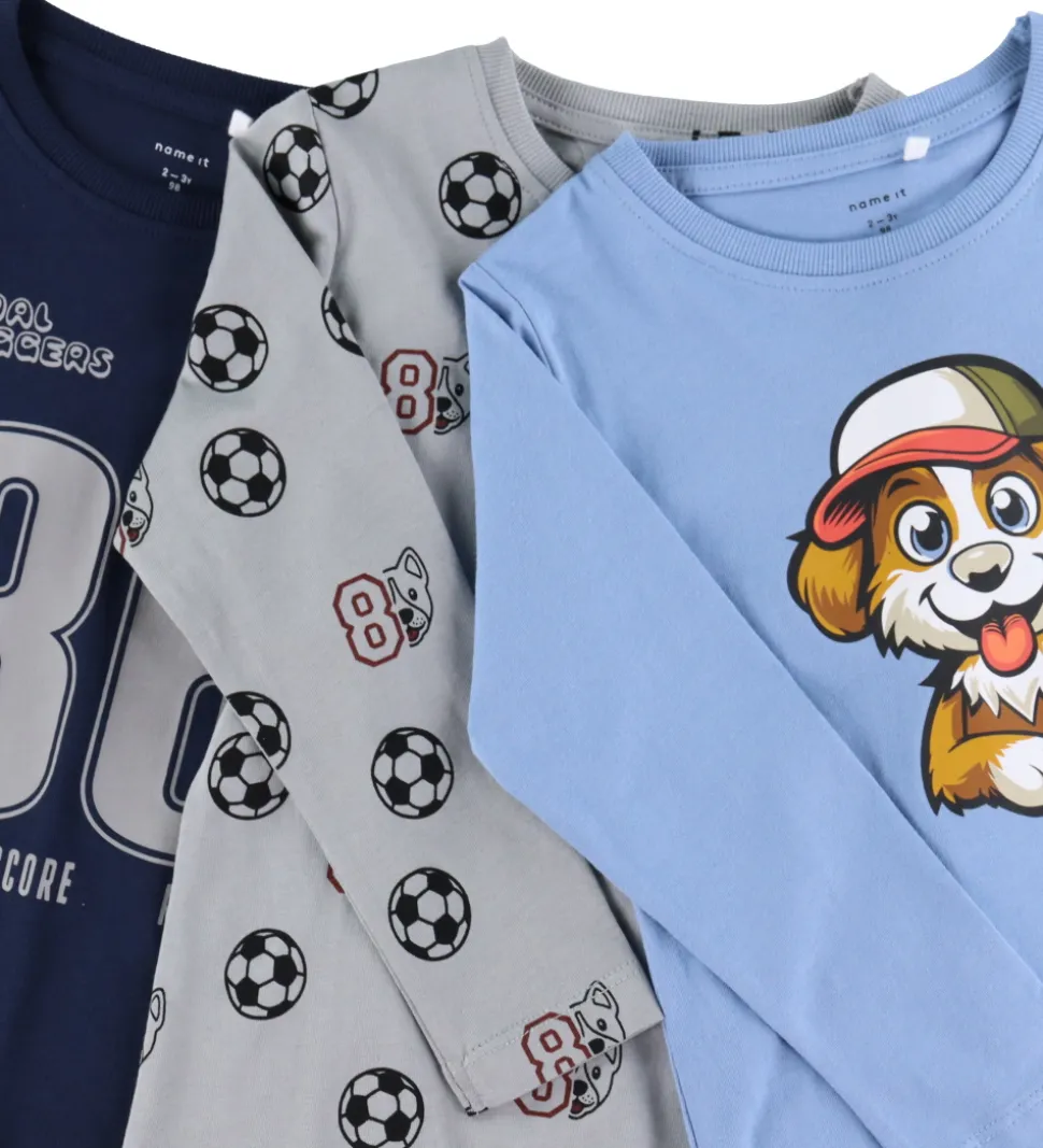 Smarte Name It bluser solgt i en 3-pak med følgende designs: