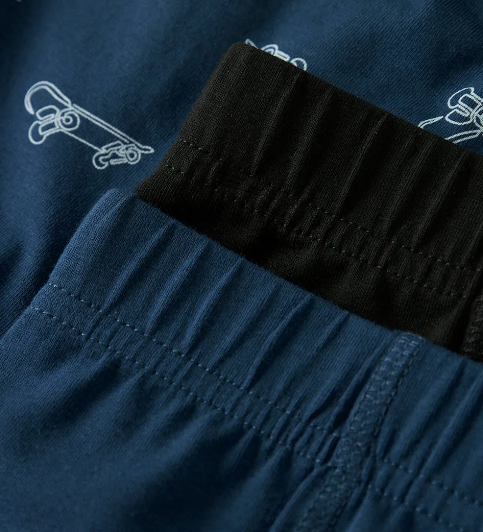 Name It boxershortsene indeholder et par i ensfarvet mørkeblå, et par i sort og et par med et sejt skateboardprint på mørkeblå baggrund. Alle boxershorts har en elastisk linning, som sikrer en god pasform.