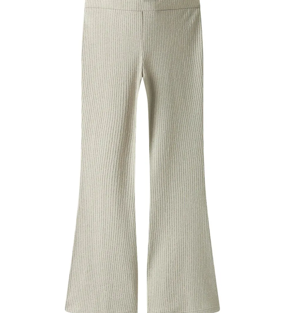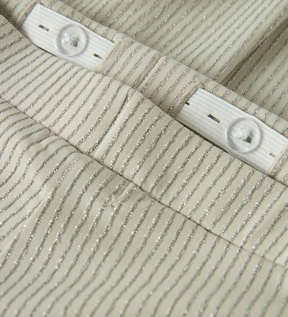 Flotte bukser fra Name It i en lysebeige farve med en sølvfarvet stribestruktur. Name It bukserne har en behagelig pasform med elastisk talje, der sikrer ekstra bevægelsesfrihed.