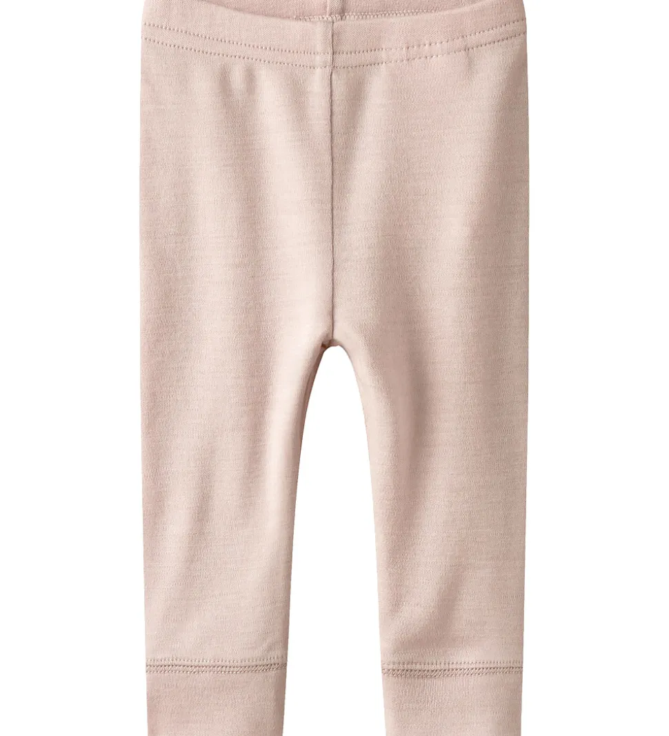 Lækre Name It bukser i støvet rosa. Name It bukserne har en smal elastik i taljen og brede kanter ved anklerne. Bukserne er fremstillet i 100% merinould.