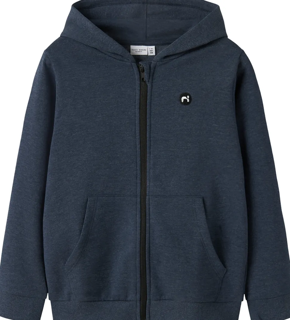 Stilfuld Name It cardigan i en dyb, marineblå nuance med hætte og lange ærmer. Denne Name It cardigan har en klassisk lynlåslukning foran og er udstyret med rummelige lommer på maven. Der er en diskret logoapplikation på brystet, som tilføjer et simpelt men moderne udtryk til designet.