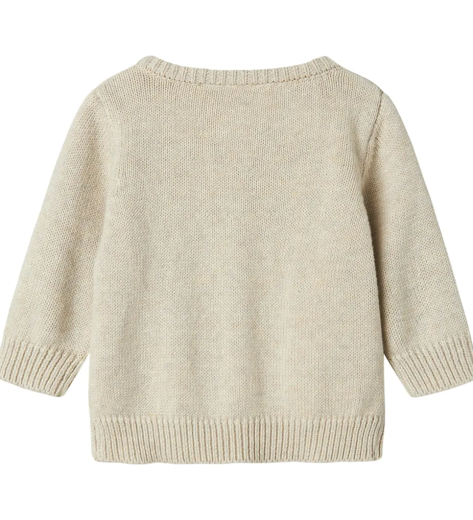 Cardiganen har en rund hals og lange ærmer med ribkanter. Name It cardiganen er udstyret med en række af knapper i træfarver, der løber langs fronten, hvilket giver et klassisk look. Den strikkede struktur tilfører ekstra varme og stil.