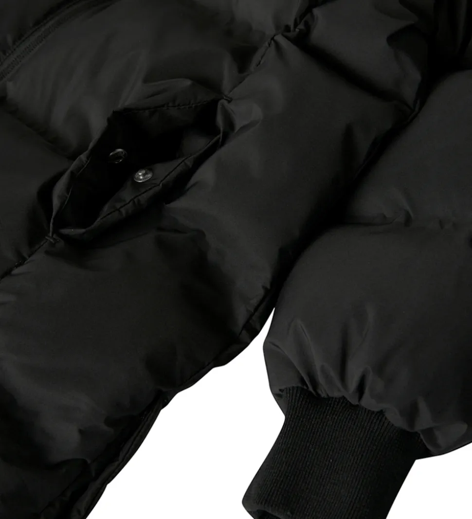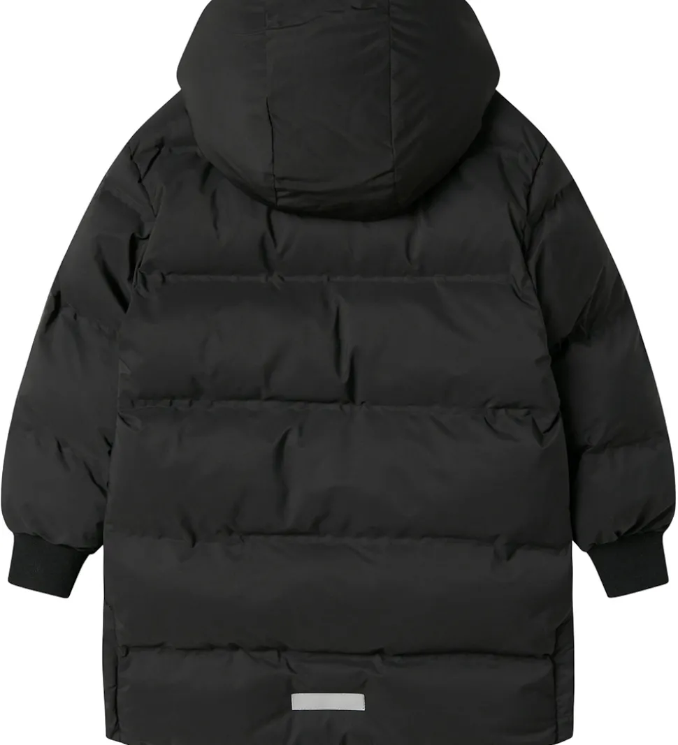 Fin Name It dynejakke i sort med en praktisk refleks nederst på ryggen.