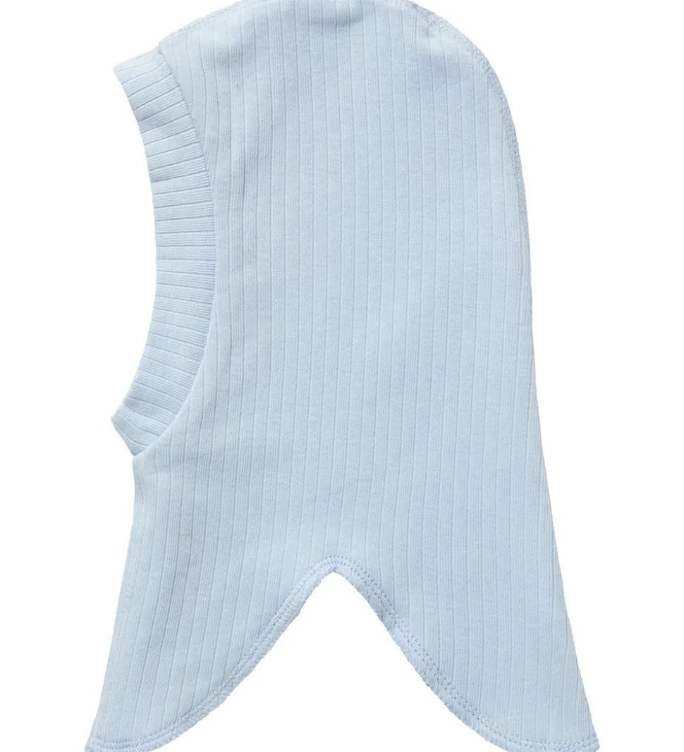 Skøn Name It elefanthue i lyseblå i fin ribkvalitet. Elefanthuen har en rund ansigtsåbning med en ribkant hele vejen rundt. Elefanthuen består af to lag i en blød blanding af økologisk bomuld og modal.