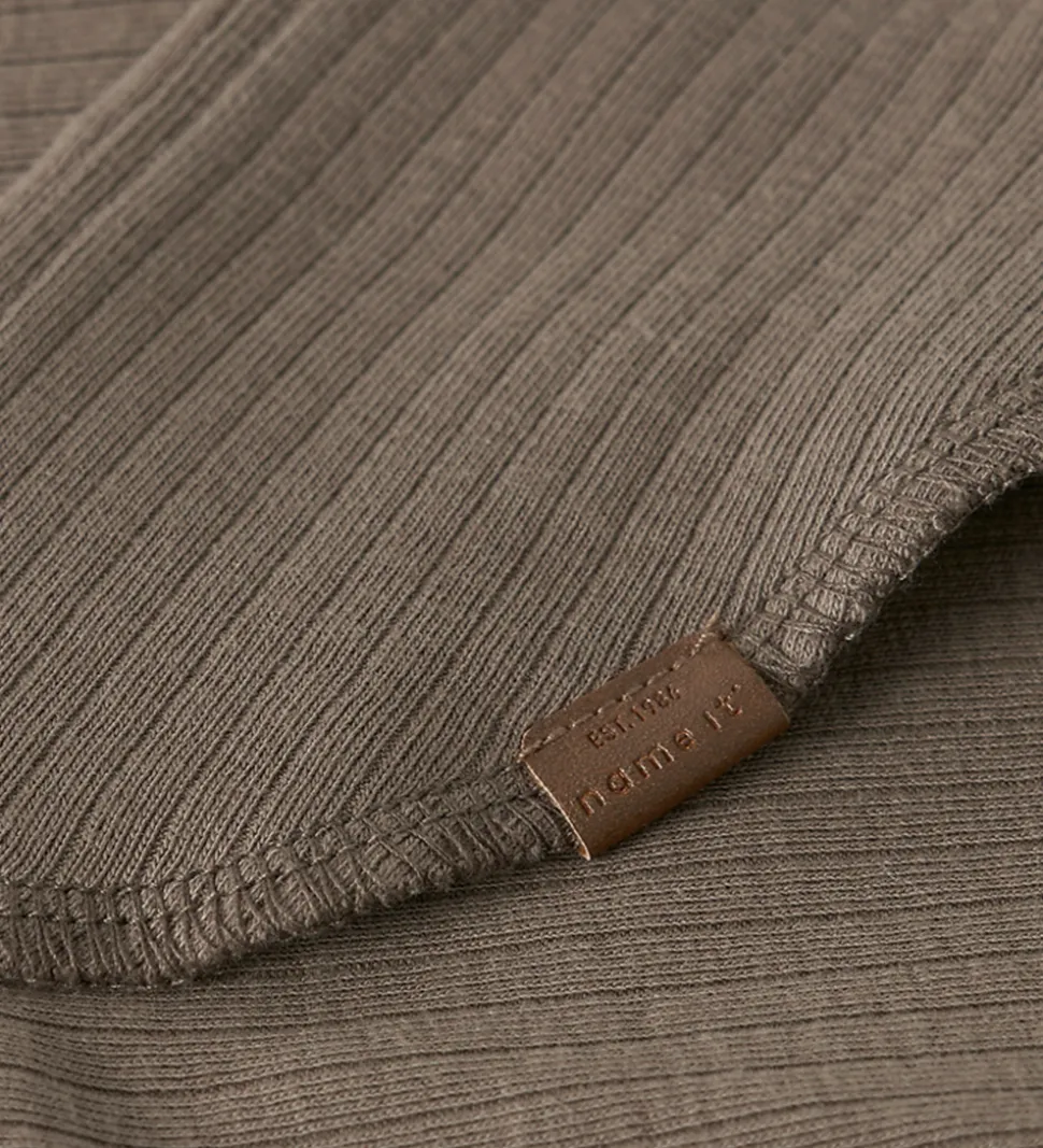Flot Name It elefanthue i brun med en elegant ribstruktur.