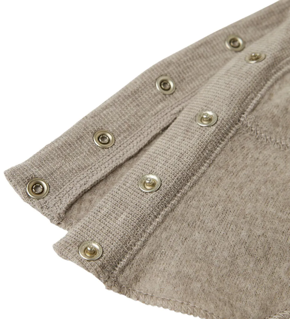 Name It elefanthuen har en rund hovedform med en bred ribkant i ansigtsåbningen. Under hagen er der gennemgående trykknapper, så elefanthuen er nem at få af og på. Elefanthuen består af ét lag lækkert fleece i merinould.