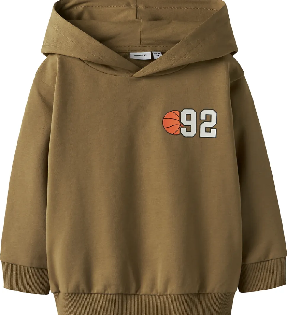 Hættetrøjen har et smart basketballprint på brystet og på bagsiden. Hættetrøjen har ribkanter ved håndled samt elastik i livet, der skaber en behagelig pasform. Name It hættetrøjen er uden lommer, hvilket giver et enkelt udtryk.