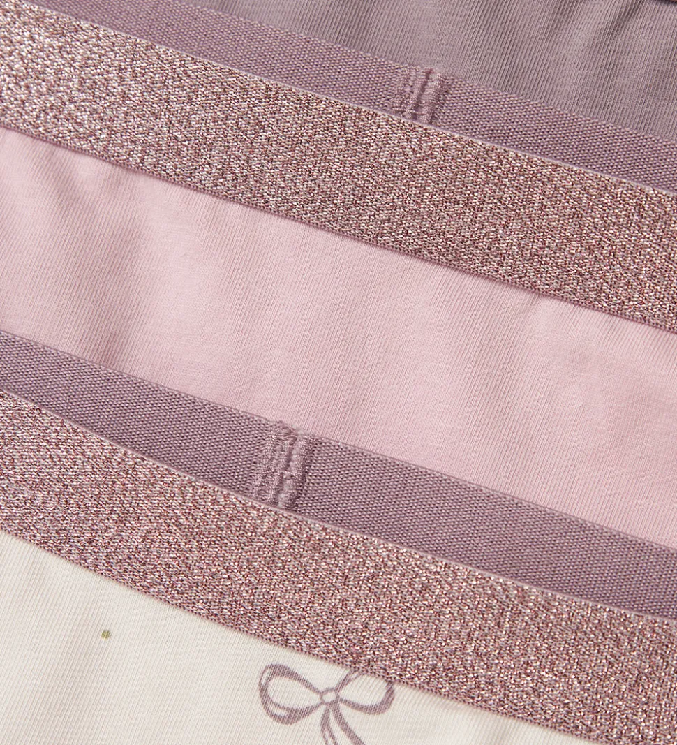 - Lys rosa med print af små sløjfer og med mørkerosa glimmer-elastikkant
