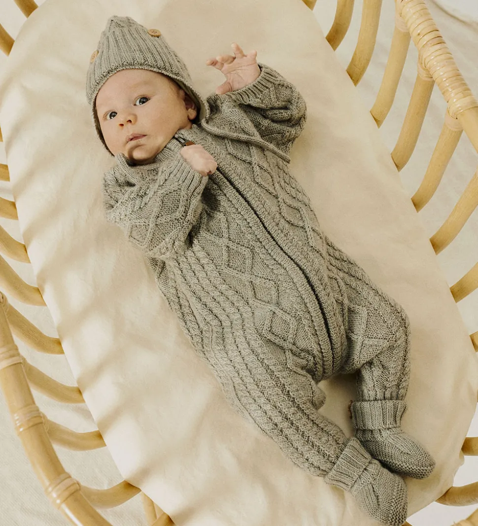 Fin Name It hue i en flot, grøn nuance. Huen er strikket i et elegant flettet mønster. På siden er der en dekorativ knap. Denne Name It hue kommer med praktiske bindebånd og øreklapper med vindstop for ekstra dækning.