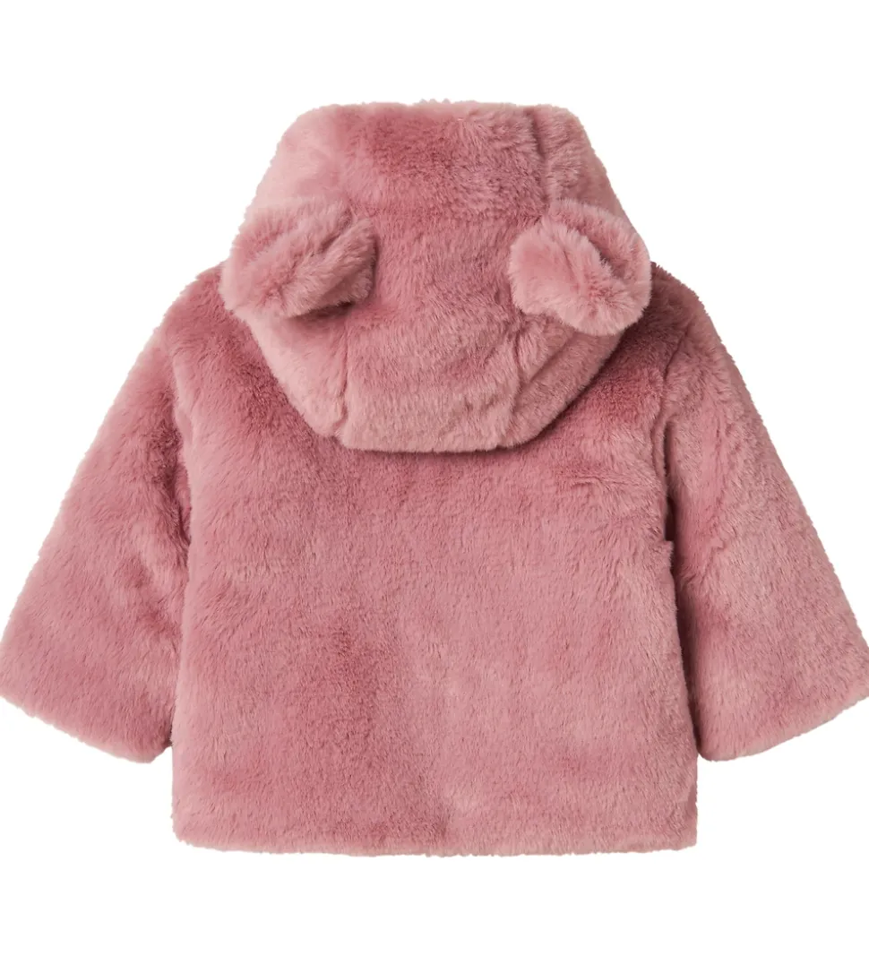 Blød Name It jakke af imiteret pels i en flot, lys, rosa farve.